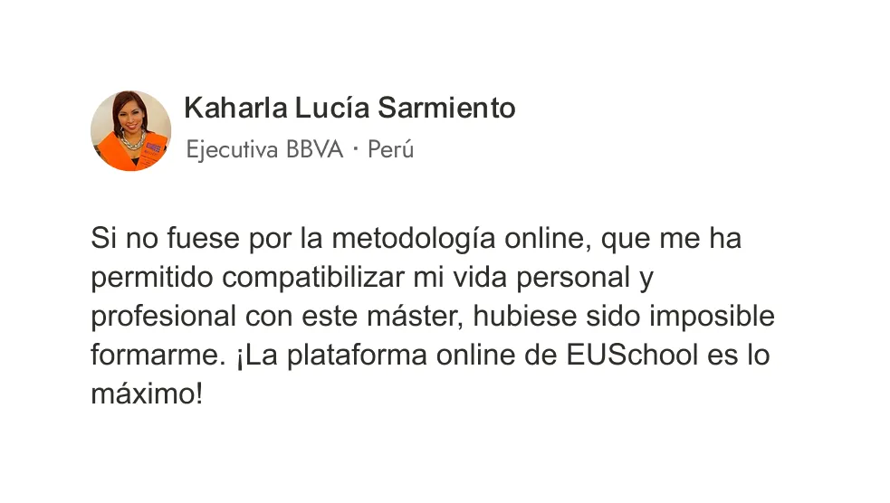 Metodología práctica y flexible: 12 meses online + 2 de TFM aplicable desde el primer día.