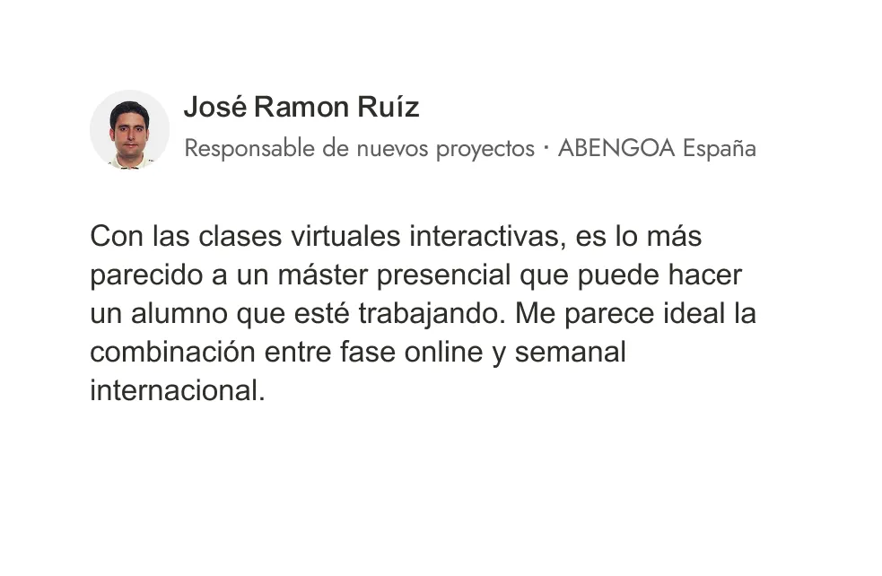 Sí. Está diseñado para profesionales en activo. Las clases son online y asíncronas, con la flexibilidad de estudiar a tu ritmo desde cualquier lugar.